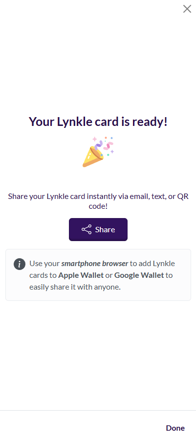 - When sending your card to people, encourage them to save your card, Lynkle will prompt them to share their details back with you making follow ups easy