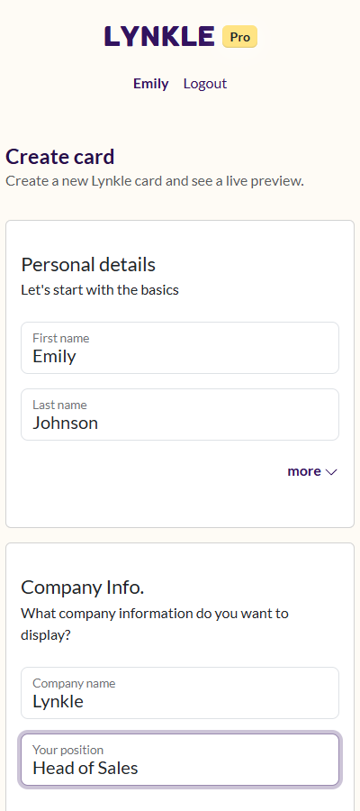 8. Preview your Lynkle digital business card